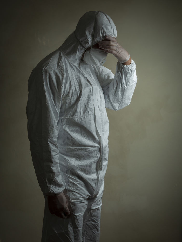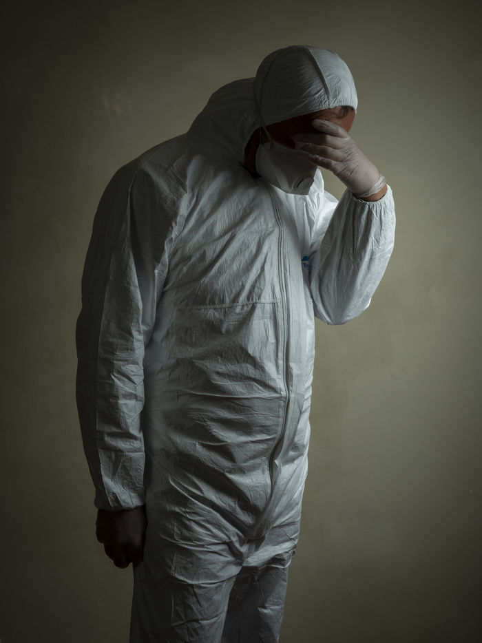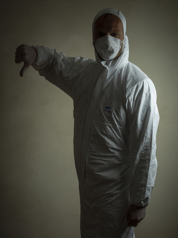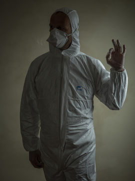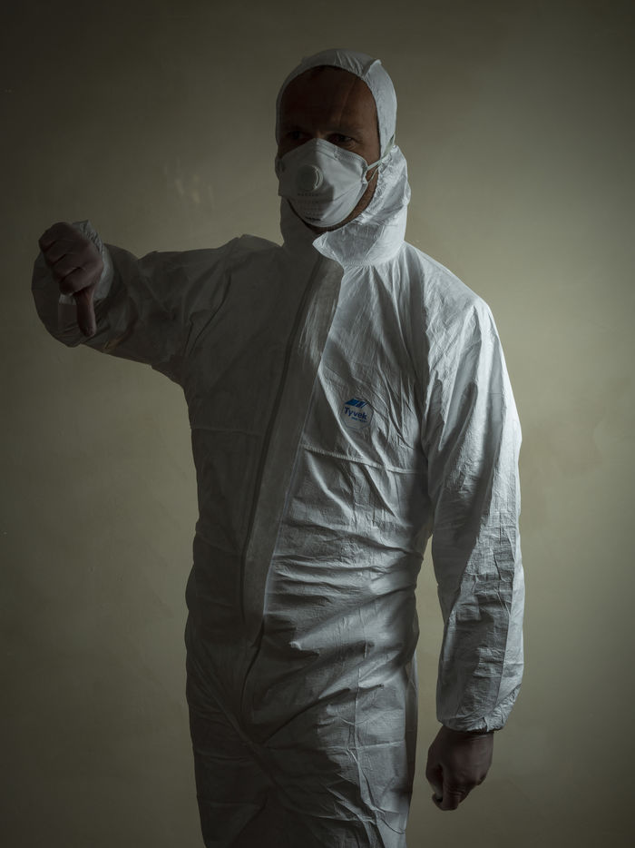 A man dressed to protect himself and others from coronavirus covid 19.