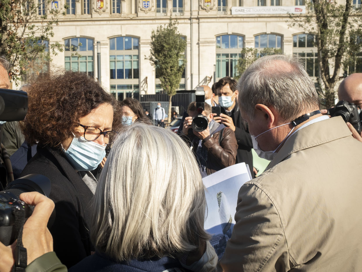 In Toulouse Mayor Moudenc receives Housing Minister Wargon to present the redevelopment of the Matabiau station district and the construction of the Occitanie tower.