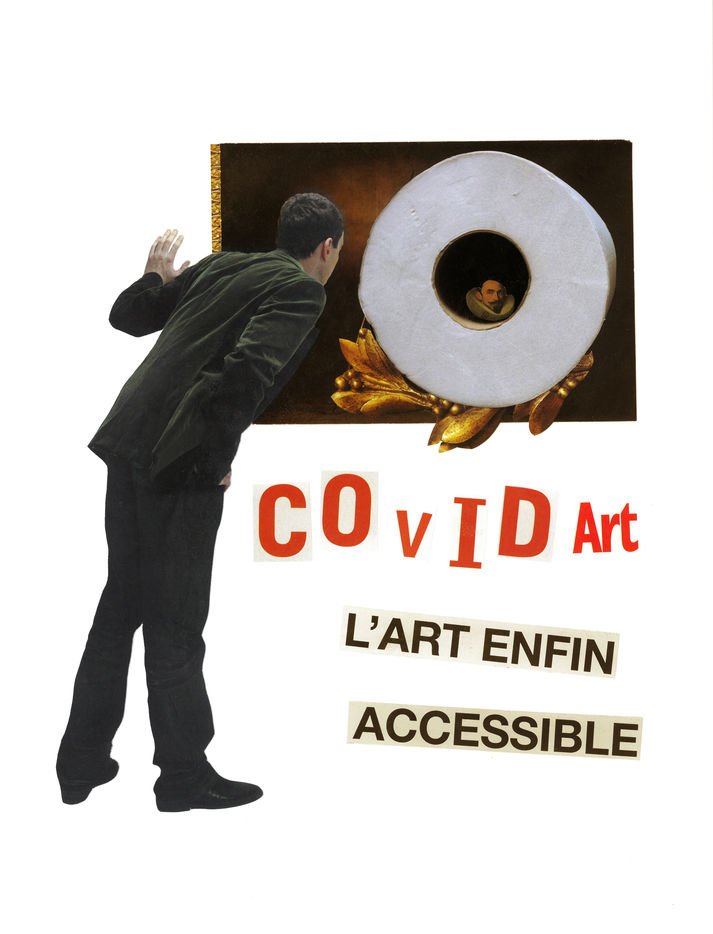 Mars 2020. En France, et ailleurs, la même scène se répète : les clients s'arrachent le papier-toilette des rayons des grandes surfaces paniqués par la pandémie de Covid19. La tension est telle qu'ils en viennent aux mains pour acheter les derniers lots. Ce phénomène surnommé #ToiletPaperApocalypse, qui a donné naissance à d'autres hashtags comme #toiletpaperwars ou #toiletpapergate, a inspiré deux artistes à créer ensemble. A partir des photographies d'Arnaud Chochon et de papiers découpés dans des magazines, Rosángela del Arco, plasticienne, a composé des tableaux en utilisant la technique du collage. L'ensemble nommé COVIDart est composé de 15 oeuvres originales. Il nous invite à prendre du recul sur cette période de pandémie et de confinements, sur nos comportements excessifs et compulsifs, notre repli sur soi ou encore notre rapport à l'intime et à la pudeur.