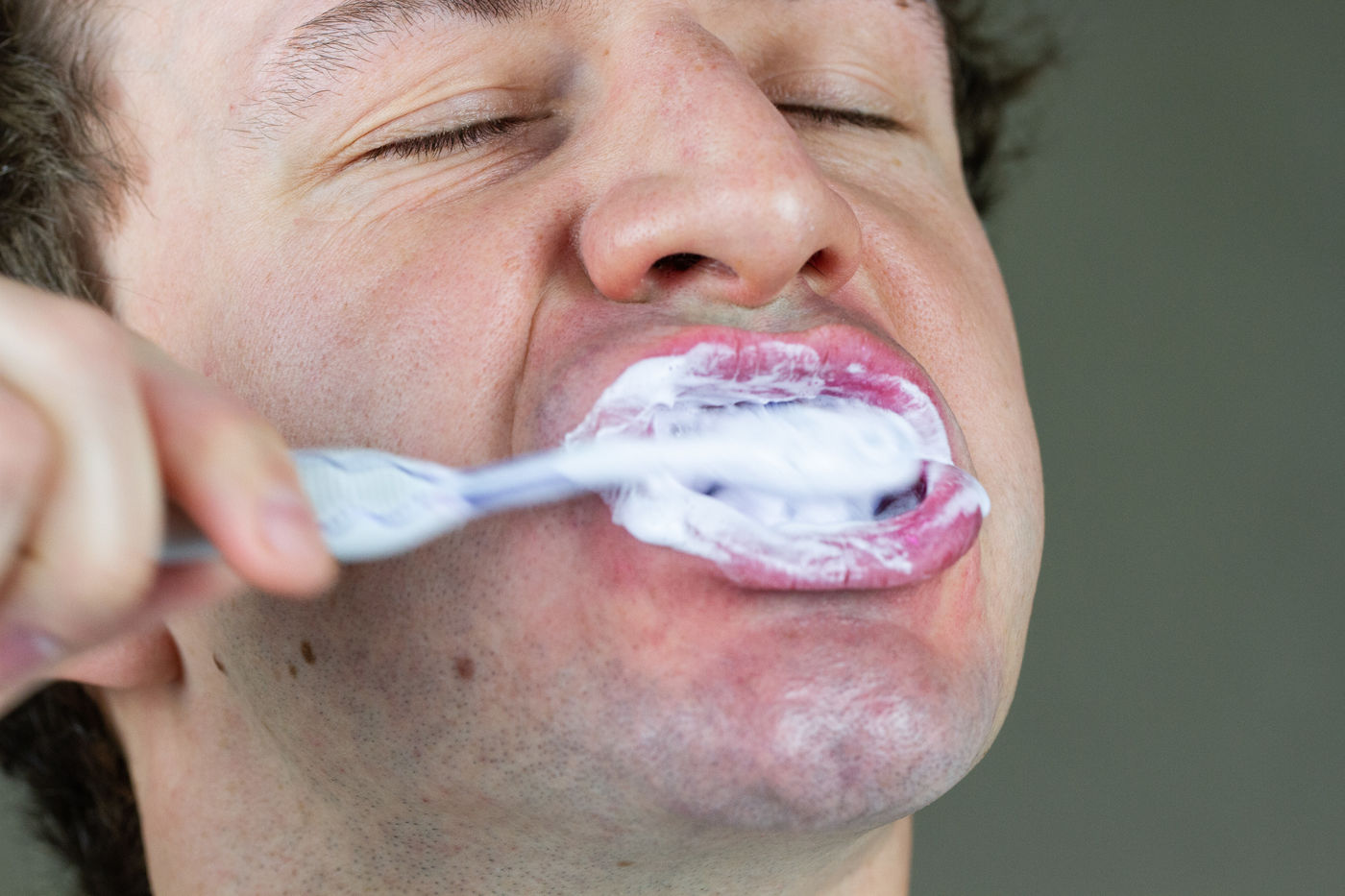Tooth brushing, self-portrait on a daily basis. Brushing your teeth is the only way to effectively fight cavities. Today, it is the only effective weapon against cavities. Brushing removes food debris and limits plaque, which is responsible for cavities and bacteria. Paris, France, October 29, 2018.