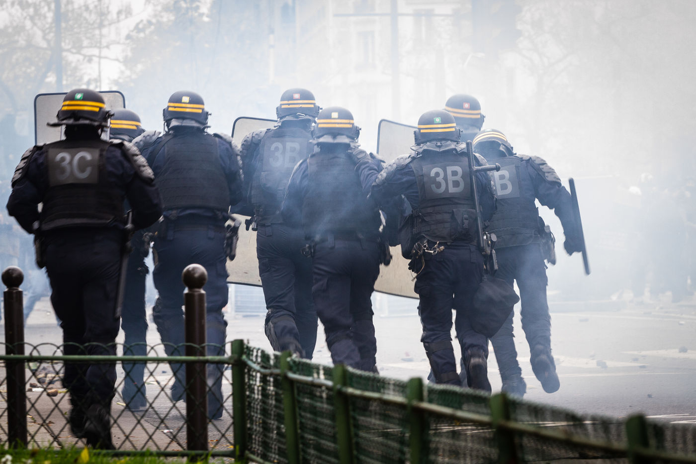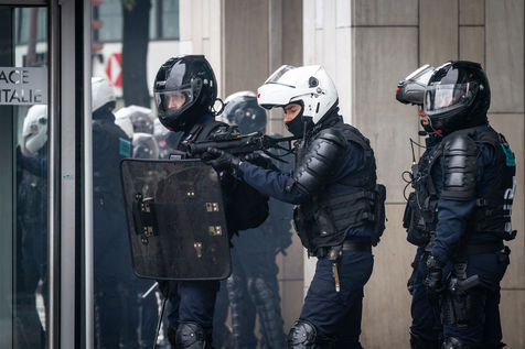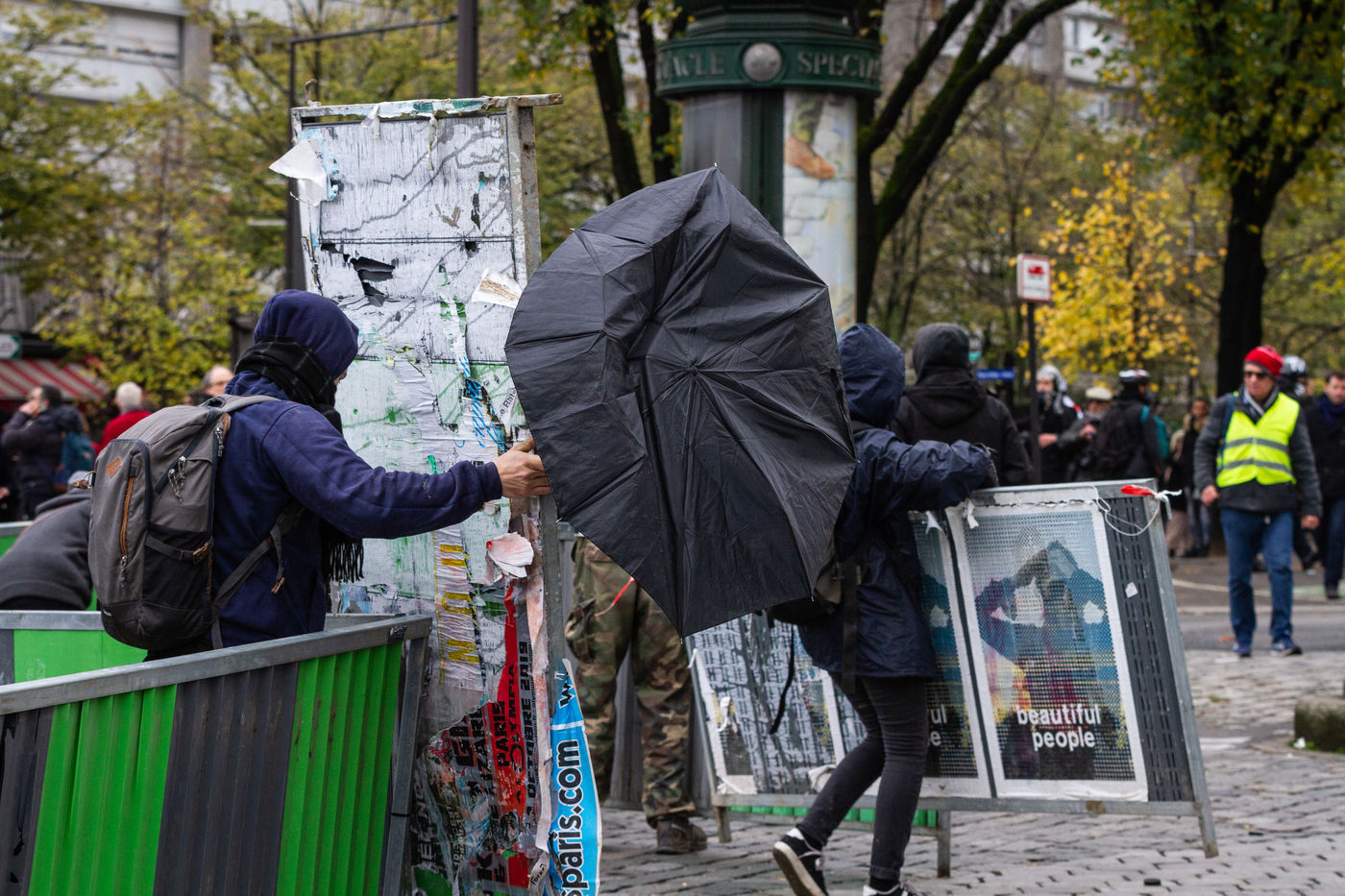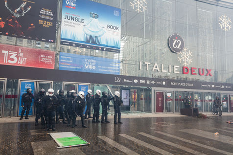 Act 53 of the Yellow Vests, anniversary of the movement's first year. The clashes between the police and the breakers began at the beginning of the day to celebrate their birthday, with a lot of violence and degradation at Place d'Italie. Paris, France, Saturday, November 16, 2019.