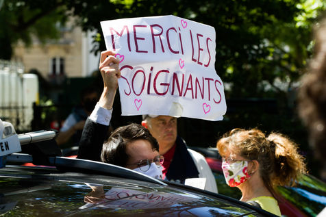 Gathering to support and pay tribute to the caregivers in front of the Tenon Hospital in the 20th arrondissement. Paris, France, Wednesday 20th May 2020.