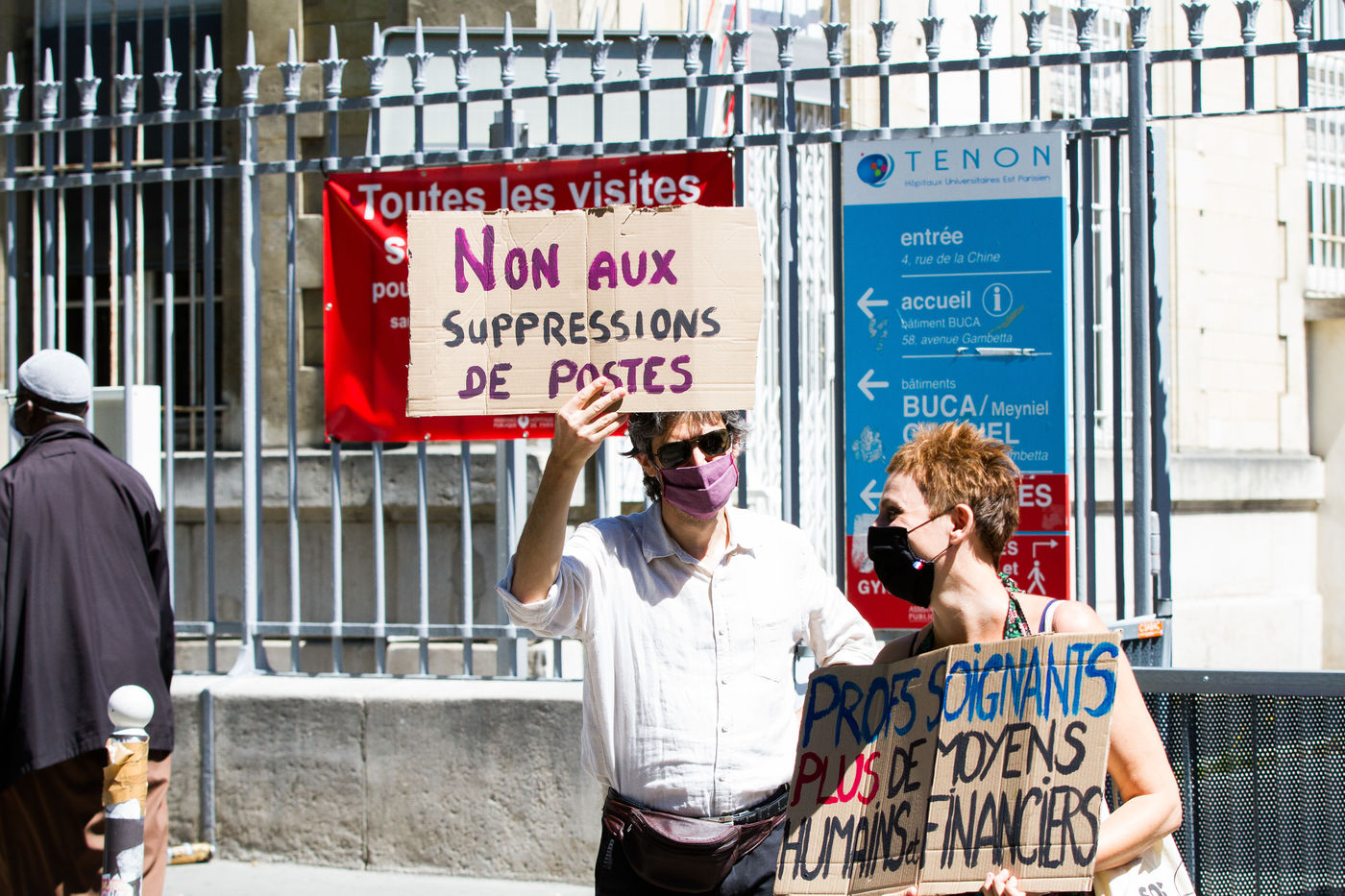 Gathering to support and pay tribute to the caregivers in front of the Tenon Hospital