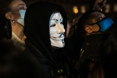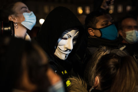 Manifestation derrière l'assemblée nationale contre la proposition de loi relative à la sécurité globale notamment contre les articles qui visent à renforcer le contrôle des photos et vidéos de policiers sur les réseaux sociaux. Paris, France, Mardi 17 Novembre 2020.