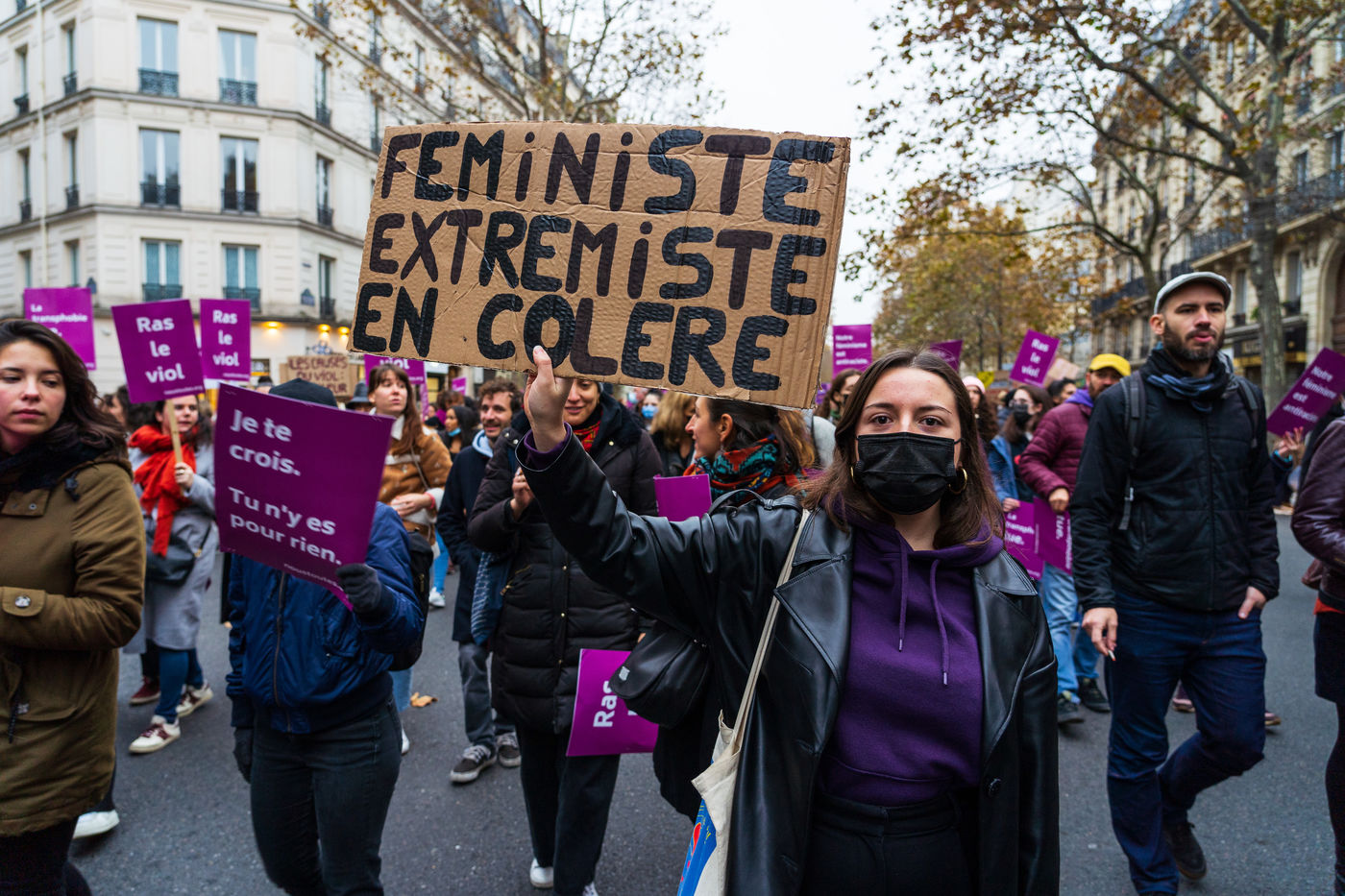 Grande manifestation féministe du samedi 20 novembre 2021 à l'appel du collectif Nous toutes contre les violences conjugales, sexistes et sexuelles, les féminicides, le patriarcat et en solidarité avec toutes les femmes victimes.