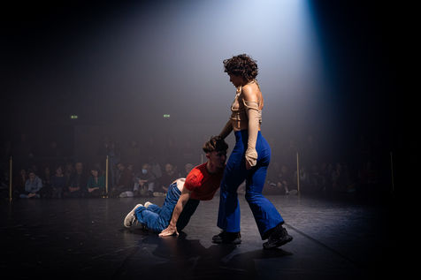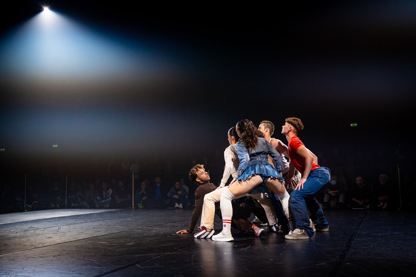We should have never walked on the Moon, exposition performative et dansée de (LA)HORDE avec le Ballet National de Marseille BNM au Théâtre National de la Danse de Chaillot. Weather is sweet, pièce chorégraphique pour 6 danseur.euse.s du BNM (création 2022), avec Titouan Crozier, Myrto Georgiadi, Eddie Hookham, Jonathan Myhre Jorgensen, Paula Tato Horcajo, Elena Valls Garcia.
