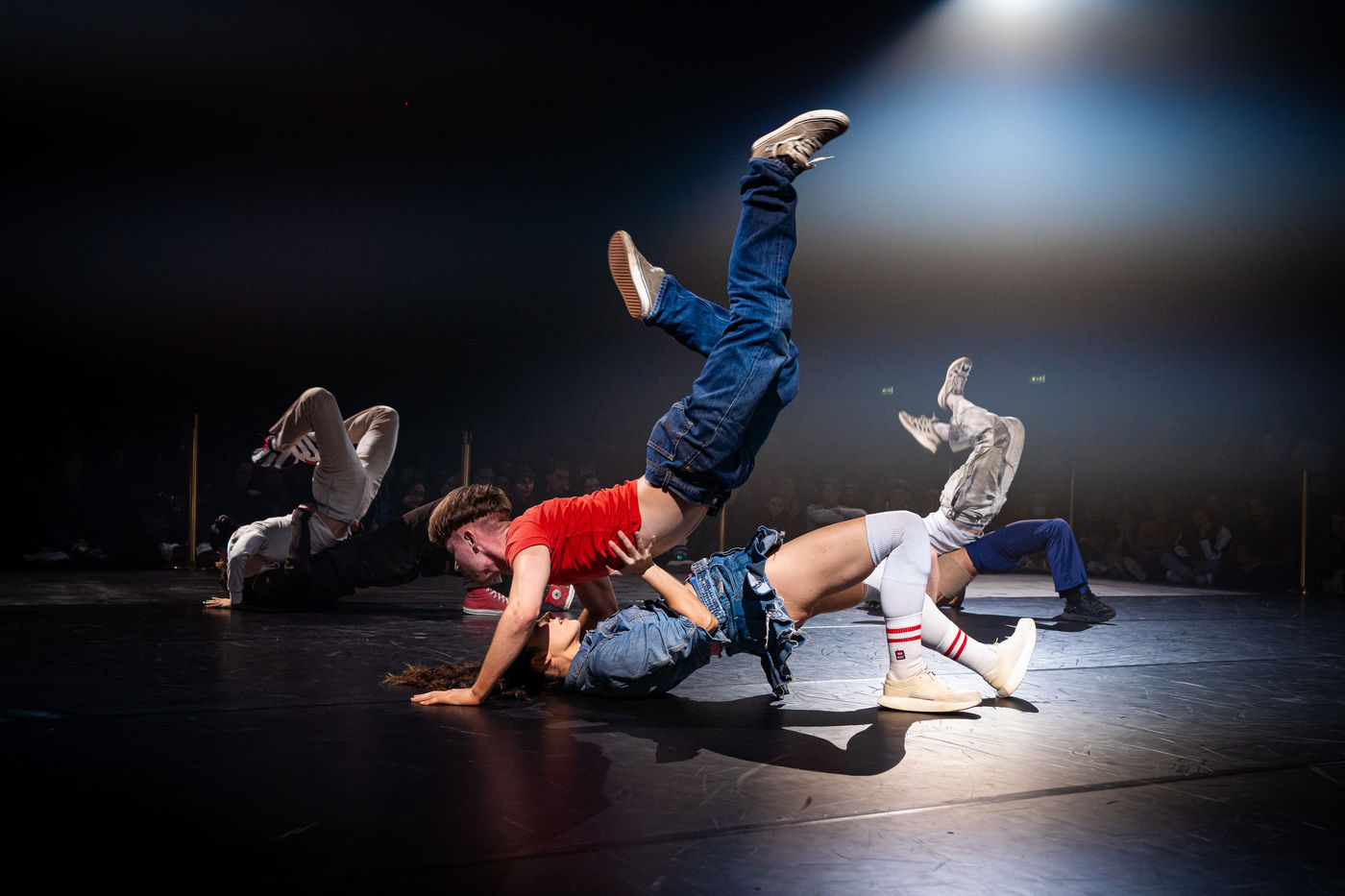 We should have never walked on the Moon, performative and danced exhibition of (LA)HORDE with the Ballet National de Marseille BNM at the National Dance Theater of Chaillot. Weather is sweet, choreographic piece for 6 dancers of the BNM (creation 2022), with Titouan Crozier, Myrto Georgiadi, Eddie Hookham, Jonathan Myhre Jorgensen, Paula Tato Horcajo, Elena Valls Garcia.