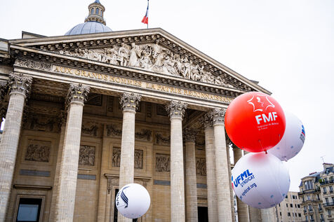 Day of strike and national demonstration in Paris of liberal doctors starting from the Place du Panthéon. Demonstration organized by the collective "Doctors for Tomorrow", supported by several unions (FMF, UFML, SML and Jeunes Médecins). The central demand of the collective is the doubling of the basic consultation fee c (from 25 to 50 euros), slogan the C=50 seen on many signs and banners. Thursday 05 January 2023.