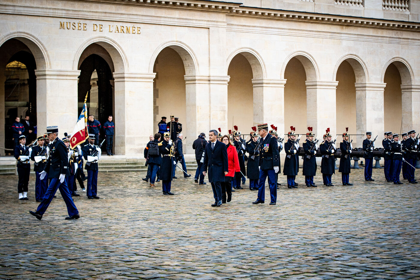 Visit of the Minister of the Interior and Overseas France. Presentation of the wishes of the National Gendarmerie in the Turenne Room of the Army Museum, Hôtel National des Invalides. Monday, January 16, 2023.