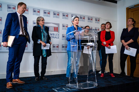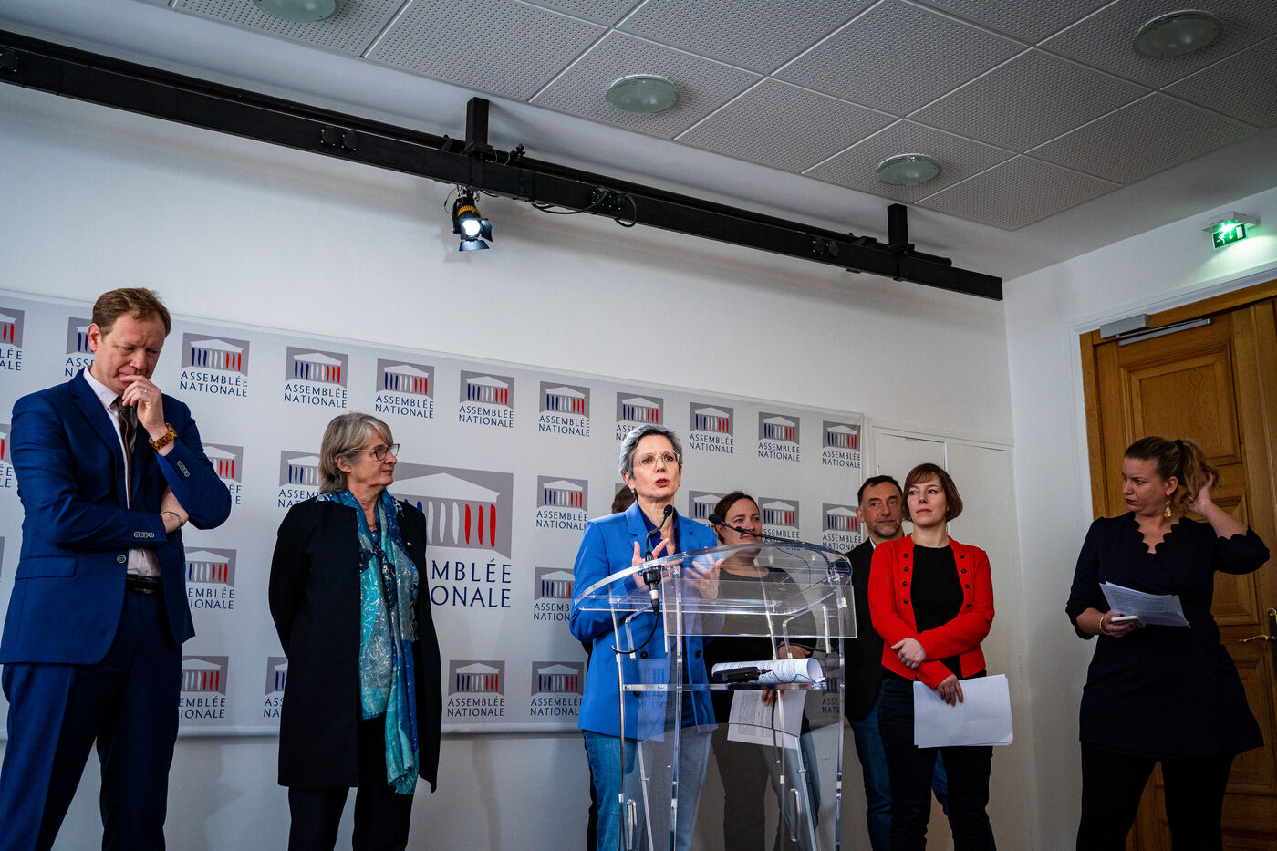 Presentation by the NUPES intergroup of a bill to better recognize women's work and its arduousness. International day of struggle for women's rights, in the context of debate and mobilization against the pension reform of which women are among the first victims, notably because of the shortened careers and the differences in salary and pension. Tuesday 8th March 2023. Press conference at the National Assembly, Paris.