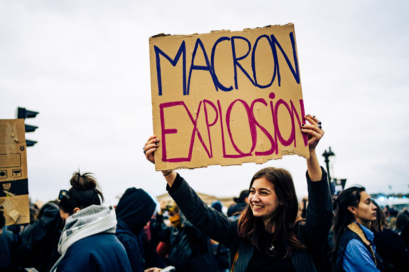 Manifestation Place de la Concorde contre le projet de réforme des retraites dans le cadre du PLFRSS 2023 (Projet de loi de financement rectificatif de la sécurité sociale), et contre l'utilisation à l'assemblée nationale de l'article 49 alinéa 3 (49.3) par le gouvernement français et sa première ministre pour un passage en force de la réforme, processus jugé anti démocratique par les nombreux manifestants rassemblés, beaucoup de jeunes. Vendredi 17 mars 2023.