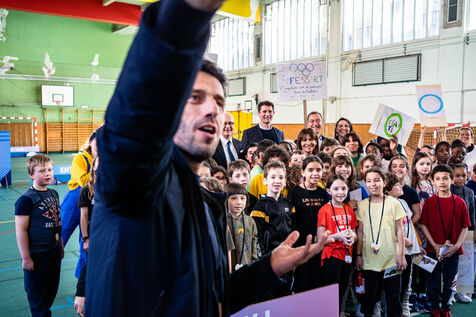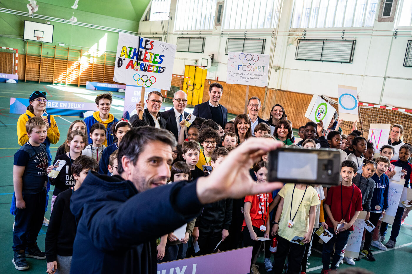 Séance des Jeux sportifs scolaires avec Anne Hidalgo et Tony Estanguet - Paris - 04/04/2023