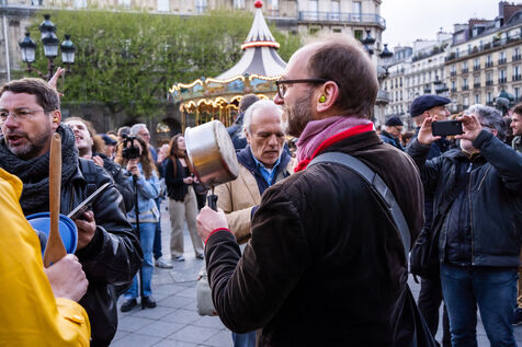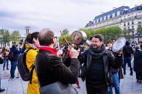 Rassemblement sous la forme d'un concert de casseroles sur la place de l'hotel de ville de paris - 24/04/2023