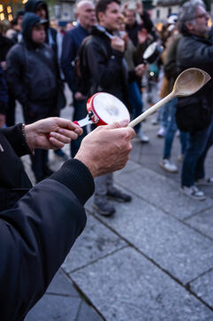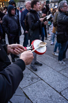 Gathering in the form of a concert of pots and pans on the place de l'hotel de ville in Paris - 24/04/2023