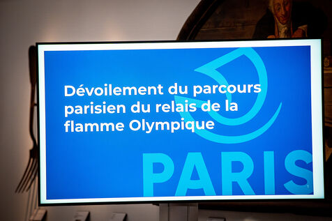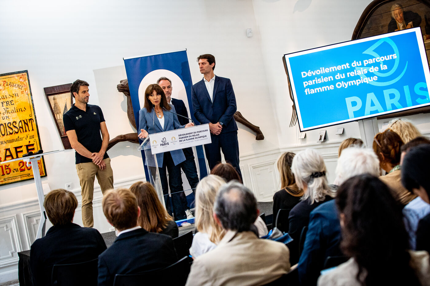 Paris Mayor Anne Hidalgo unveiled the Parisian route of the Olympic Flame in the emblematic Musée Carnavalet, located in the heart of the Marais district, in the presence of Tony Estanguet, President of the Organizing Committee for the Olympic and Paralympic Games, and deputy mayors Emmanuel Grégoire and Pierre Rabadan. Monday 03 July 2023.