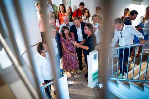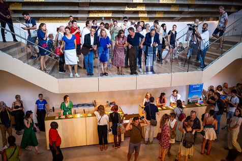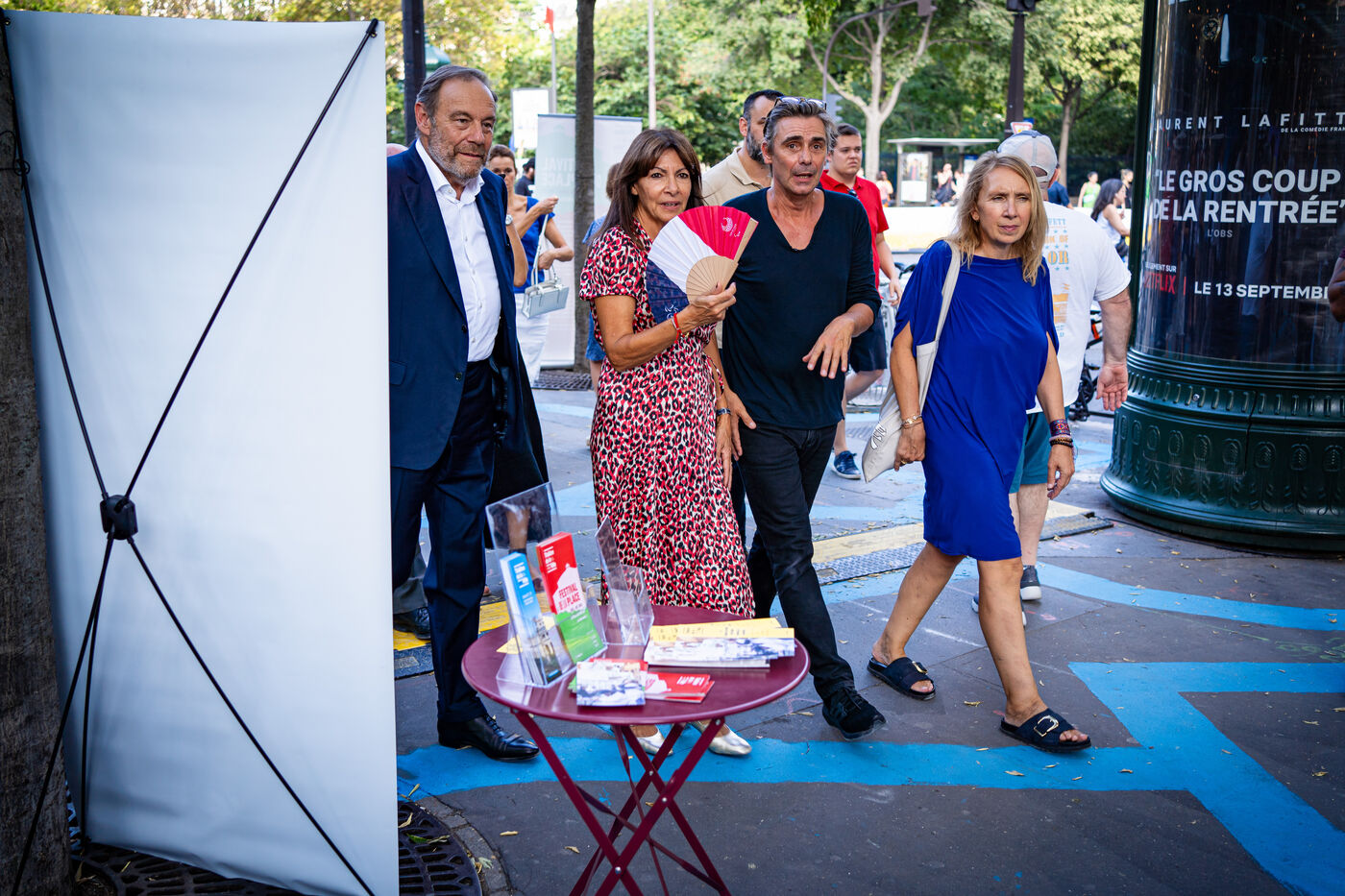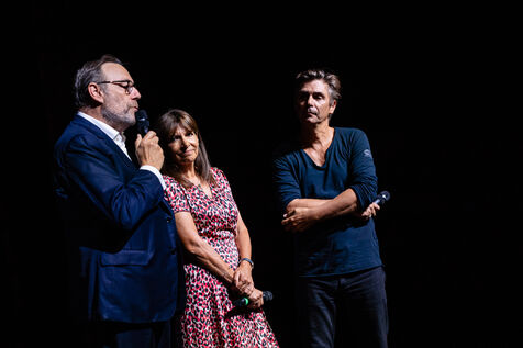 Réouverture du Théâtre de la Ville, rebaptisé Théâtre Sarah Bernhardt, après 7 ans de travaux et de délocalisation de sa programmation culturelle, en présence de la Maire de Paris, du président et du directeur du théâtre. Paris, samedi 9 septembre 2023.
