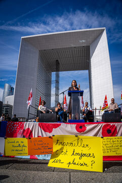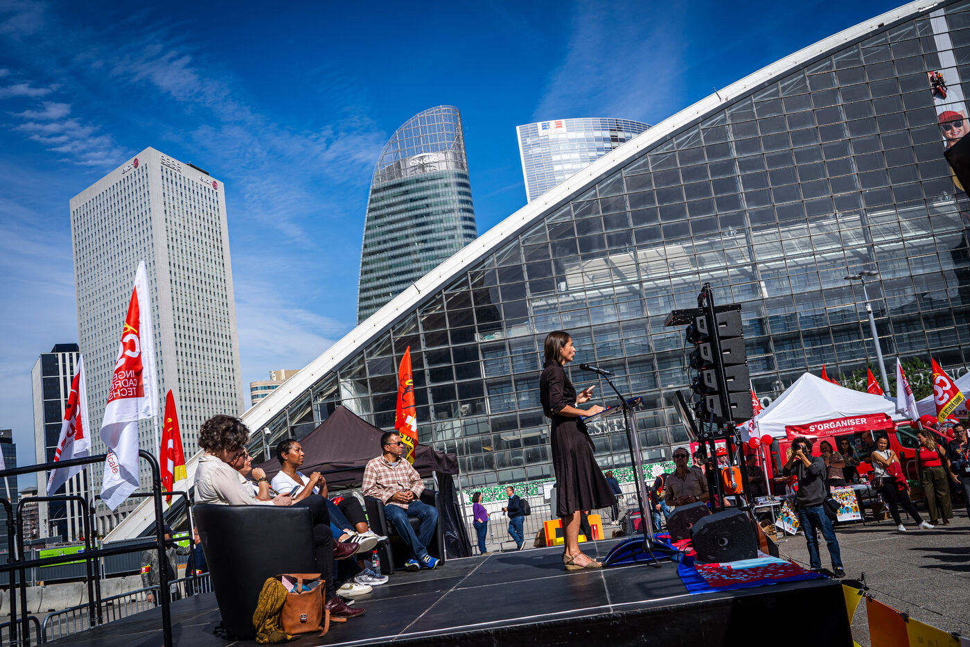 Meeting de Sophie Binet devant la Grande Arche de la Défense - CGT - Puteaux - 26/09/2023