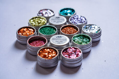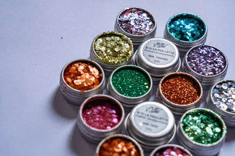 Illustration of the European Commission's decision to ban the use of loose glitter in household, medical and cosmetic products. The European Union has decided to remove all microplastics from products for the good of the planet, under the EU's chemicals regulation (REACH), in particular to limit pollution in the oceans due to the release of these microplastics. There are eco-friendly alternatives, however, such as the cosmetics brand "Si Si la paillette", which markets so-called biodegradable loose glitter, created from cellulose nanocrystals found in plants. Paris, October 12 2023.