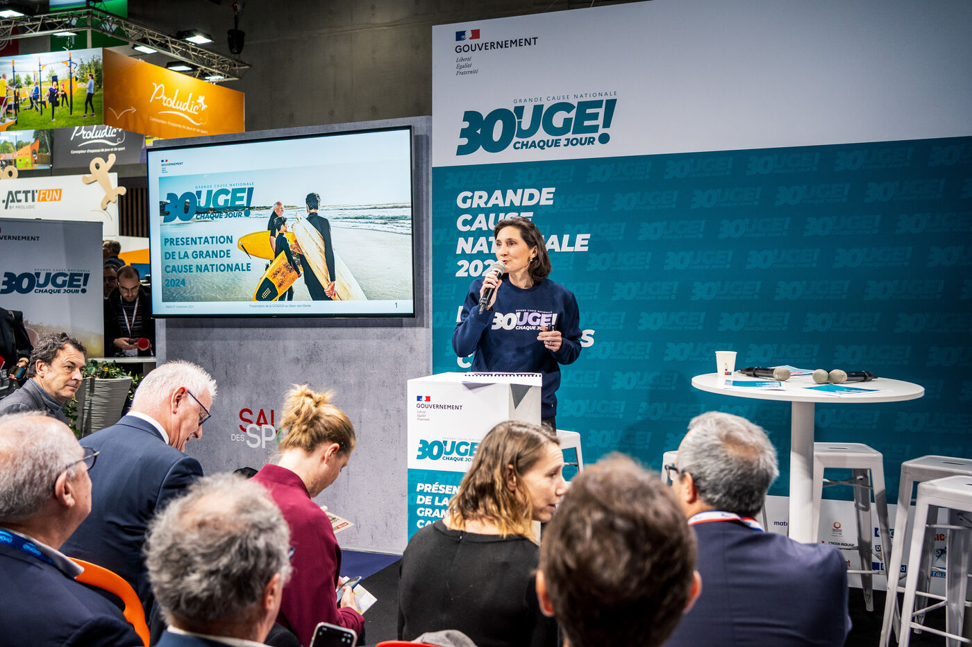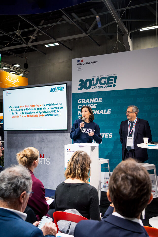 Conference to present and launch the Great National Cause 2024. Amélie Oudéa-Castéra, Minister for Sport and the Olympic and Paralympic Games. The theme of GCN 2024 is the promotion of physical activity and sport, the Olympic and Paralympic year for the PARIS 2024 Olympic Games