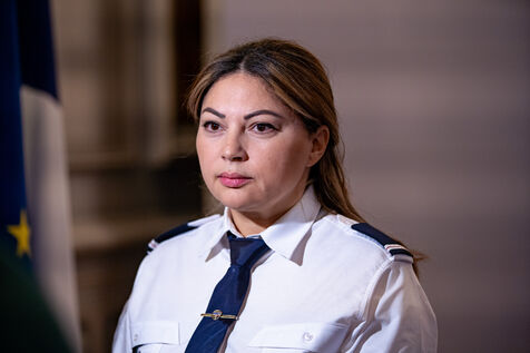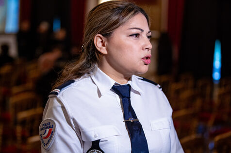 Presentation of the play "I'm doing well" on the subject of violence against women. The play was written by police officer Sonia Aya to create an educational tool for police officers, and has already been performed at police academies, with 10,000 officers in attendance. It tells the story of a woman who is a victim of domestic violence and rape, and who eventually turns to the police for help (39 19 telephone number and website), before becoming a police officer herself. Awareness-raising and training in support for victims of gender-based and sexual violence. Play performed by actress Caroline Misbach. Interior Minister Gérald Darmanin came for a few minutes at the end of the play. Monday November 27, 2023, Ministry of the Interior, Place Beauvau, Paris.