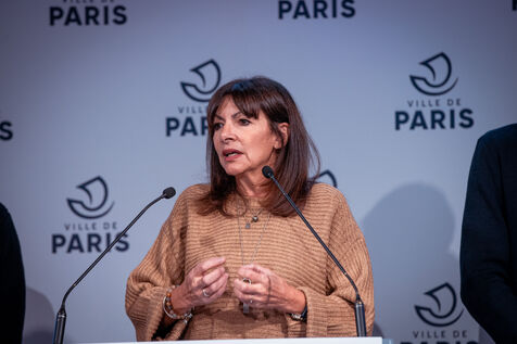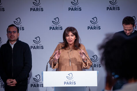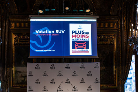 The City of Paris unveils details of the citizens' vote on the place of SUVs in Paris, scheduled for February 4, 2024. Press conference with the Mayor of Paris and deputy mayors at City Hall. The question asked will be : For or against the creation of a specific rate for parking heavy, bulky and polluting individual cars (social justice, pollution control...). Friday December 8, 2023.