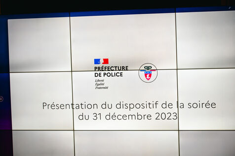 Visit by the Minister of the Interior and Overseas France to the Paris Police Prefecture. Press conference to present the enhanced security measures for New Year's Eve, in the presence of the Paris Police Prefect, the Deputy Director General of the National Police and the Major General of the National Gendarmerie André Petillot. Ensuring the safety of Parisians and tourists at a time when the vigipirate plan is at its maximum level (emergency attack) and the terrorist threat is high. Friday, December 29, 2023.