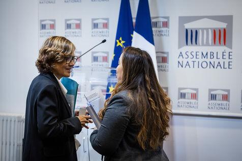 Présentation par Mme Béatrice Bellamy (Vendée, HOR), présidente,et Mme Sabrina Sebaihi(Hauts-de-Seine, Écolo-NUPES) rapporteure, des conclusions de la commission d'enquête relative à l'identification des défaillances de fonctionnement au sein des fédérations françaises de sport, du mouvement sportif et des organismes de gouvernance du monde sportif en tant qu'elles ont délégation de service public. Le rapport dénonce les violences sexistes et sexuelles VSS dans le sport, l'omerta, et l'entre soi des fédérations sportives et cible la plateforme du ministère des sports Signal-sports. Plateforme de la commission Balance ton sport. Conférence de presse des groupes parlementaires dans la Salle des conférences de presse de l'Assemblée Nationale. Mardi 23 Janvier 2024.