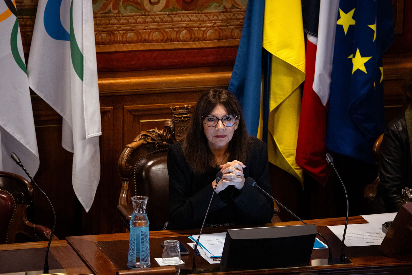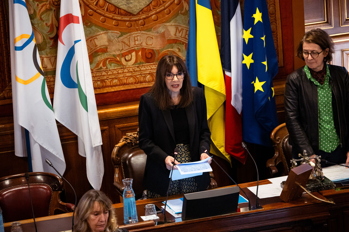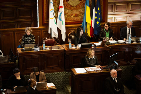 February 2024 Paris Council meeting at Paris City Hall. Topics discussed: sale of Parc des Princes to PSG, school map, local mobility plan in Paris and granting honorary citizenship to Hamas hostages. Paris City Hall, Tuesday February 6, 2024.