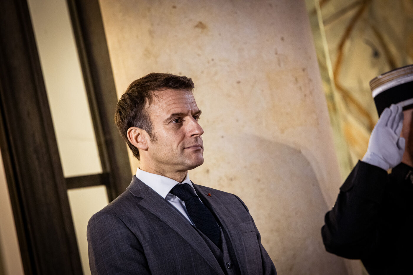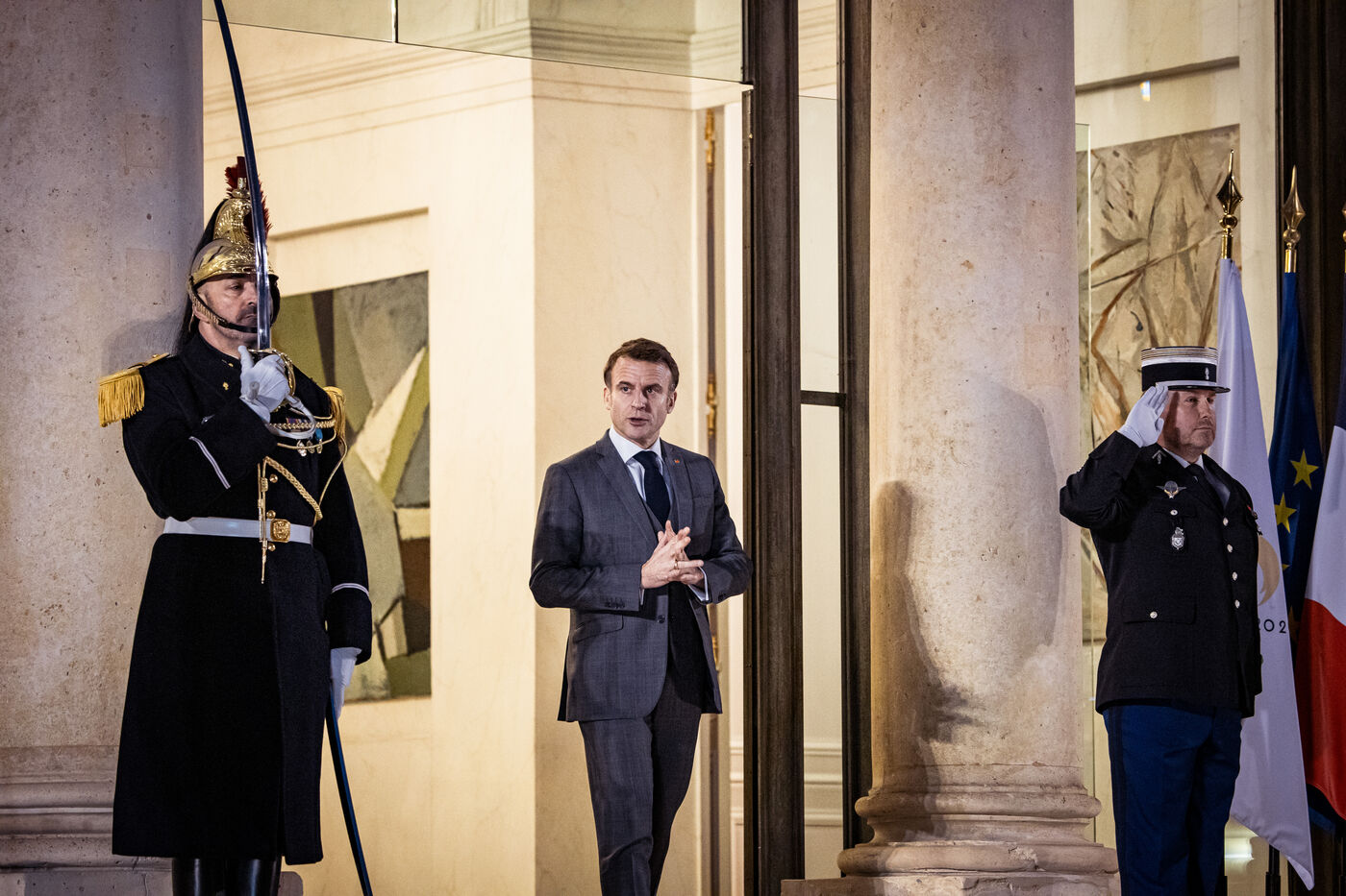 Cour d'honneur ouverte du Palais de l'Elysée à l'occasion de l'entretien du Président de la république française Emmanuel Macron avec Milojko Spajic, Premier ministre du Monténégro. Lundi 05 Février 2024.