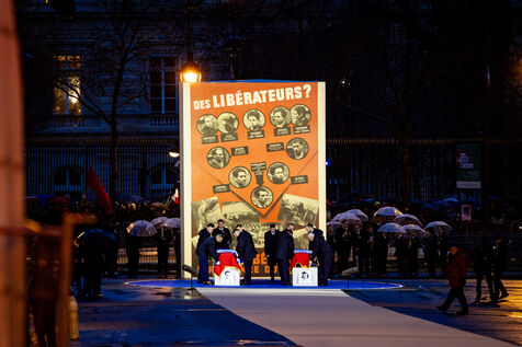 Entrance ceremony for Missak and Mélinée Manouchian into the Panthéon. Tribute to the 23 members of the Manouchian group, foreign communist resistance fighters (FTP-MOI), shot at Mont Valérien. Immigrant worker, the first foreign resistance fighter to enter the Pantheon, Jewish Armenian communist internationalist and anti-fascist, shot by the Germans on February 21, 1944. Pantheonization, recognition of the contribution of foreigners to the Resistance. Wednesday, February 21, 2024.