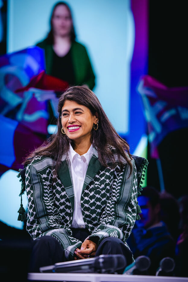 Popular Union convention, meeting to present the list of candidates and launch the European election campaign for the left-wing political party La France Insoumise (LFI) at the Exhibition Center Paris Nord Villepinte on March 16, 2024.
