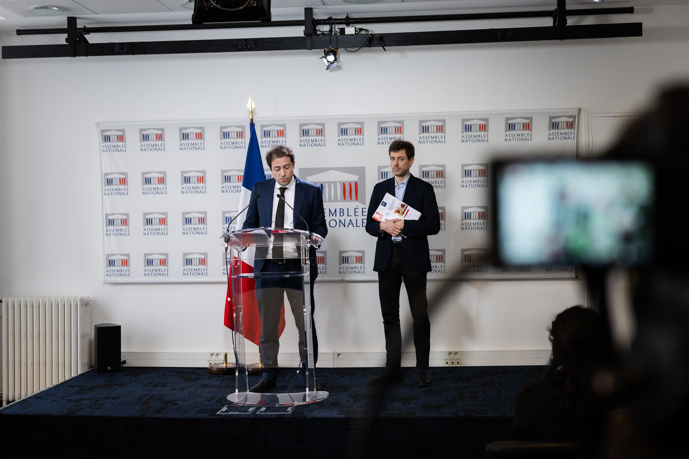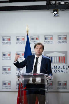 Presentation by Paul Vannier (LFI-NUPES MP) and Christopher Weissberg (Renaissance MP), rapporteurs of the report by the information mission on state funding of private education under contract at a press conference at the National Assembly in Paris, France on April 3, 2024. Conclusions of the cross-party mission of deputies from the Commission for Cultural Affairs and Education on state funding of private schools, the report includes 55 proposals for improvements or controls to be put in place.