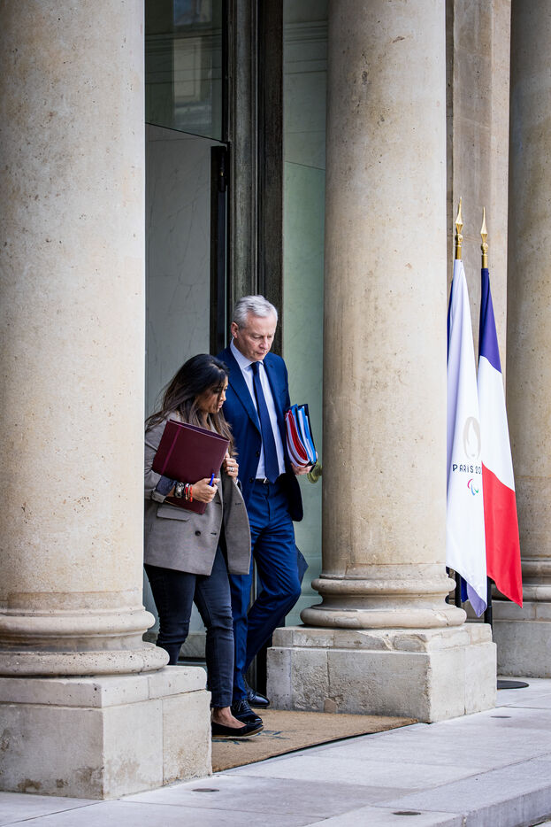 Les ministres quittent le palais presidentiel de l'Elysee apres la reunion hebdomadaire du conseil des ministres a Paris, France le 24 avril 2024. Le conseil des ministres est une reunion de travail entre les membres du gouvernement francais.