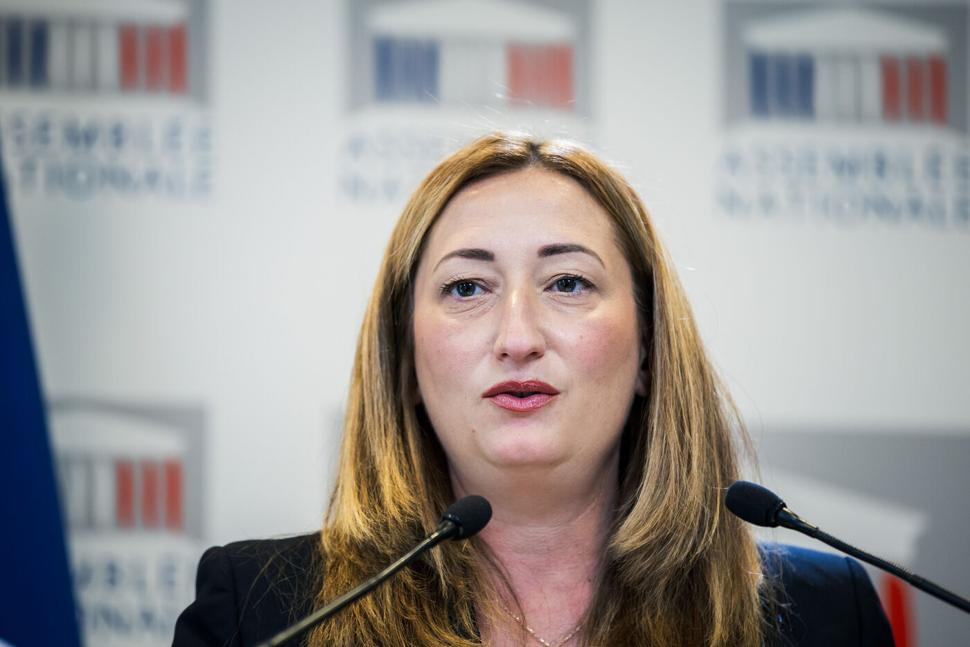 Press briefing by Ecologist MP Francesca Pasquini (Ecolo - NUPES group) and Democrat MP Erwan Balanant (MoDem group) on the committee of enquiry into violence in the film, audiovisual, advertising, fashion and performing arts industries at the National Assembly in Paris, France on May 15, 2024. Press conference to present the committee's work schedule and the dates of forthcoming hearings in the midst of the Cannes Film Festival and #metoo in French cinema. Several female victims, some of whom were minors at the time of the events, are accusing and denouncing men, particularly directors and television presenters, of rape and sexual violence.