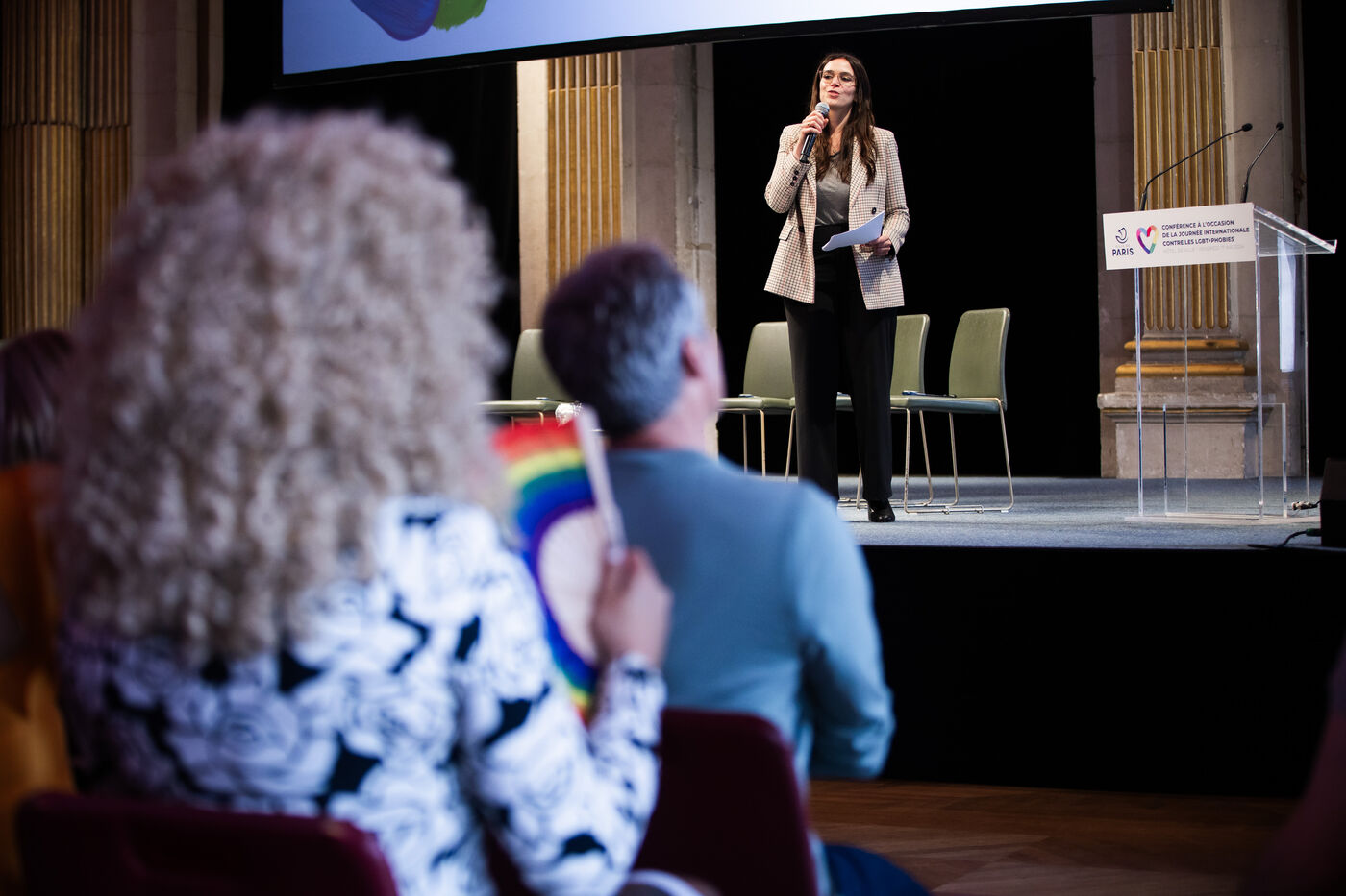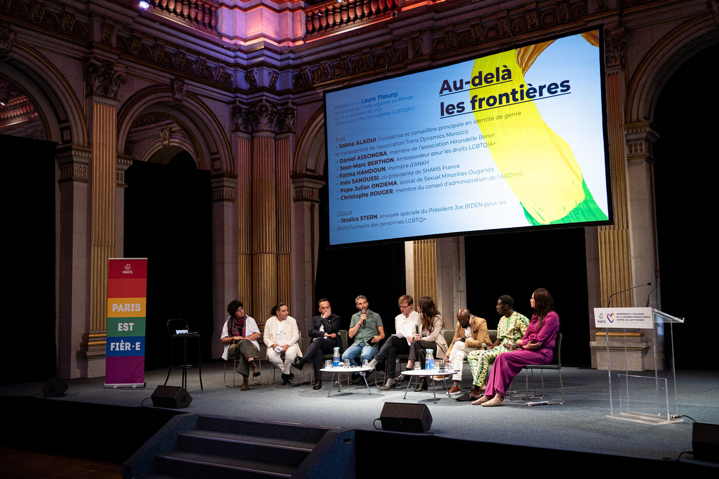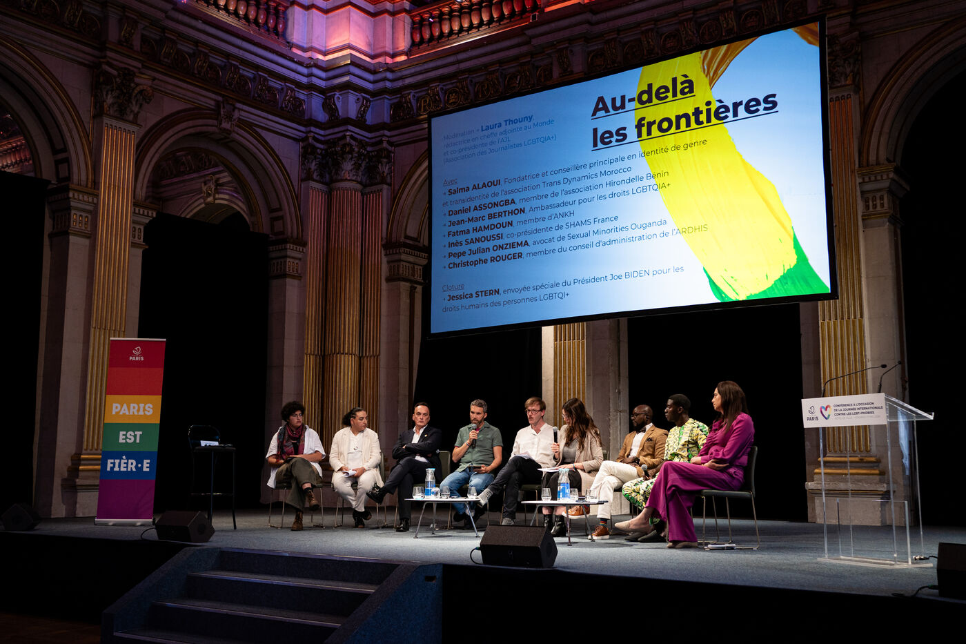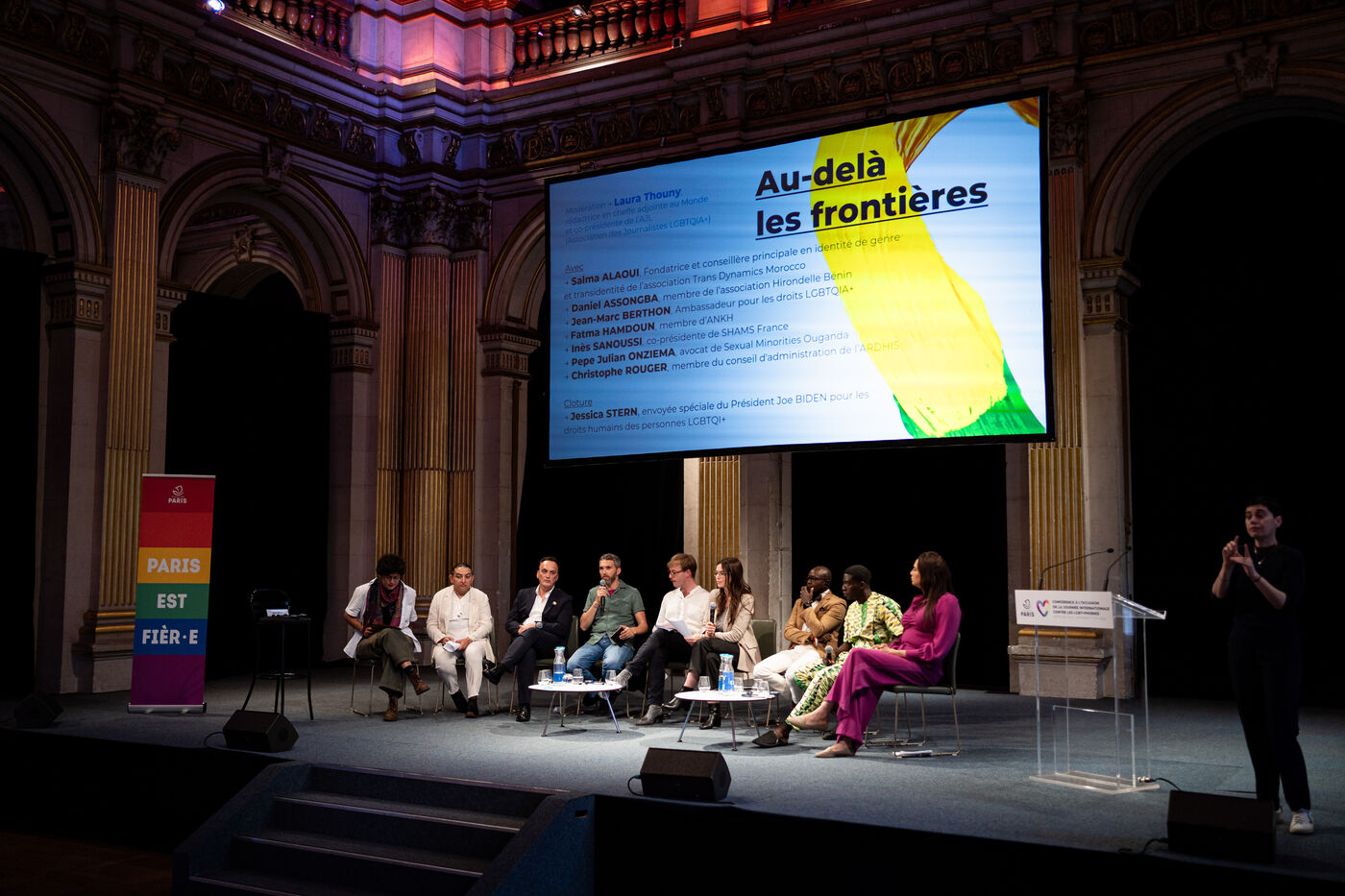 Conference ?Beyond borders: LGBTQIA+ struggles and journeys in countries that penalise and criminalise gender identity and sexual orientation? in the Foyer of the City Hall in Paris, France on May 17, 2024. Conference to mark the International Day Against Homophobia, Biphobia, Transphobia and Lesbophobia (IDAHOT / IDAHOBIT), against all forms of LGBTphobia and for the rights of LGBTQIA+ people.