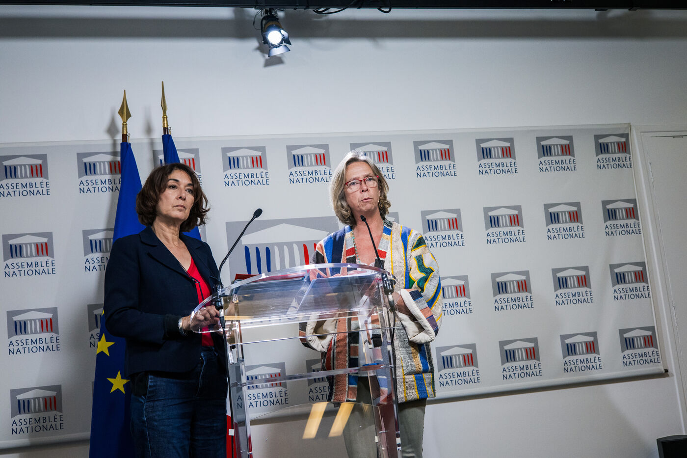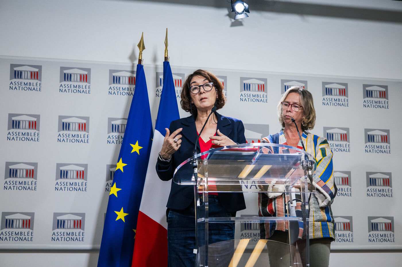 Press conference to mark the presentation by the rapporteurs, Soumya Bourouaha (Communist, Democratic and Republican Left, Left Opposition) and Virginie Lanlo (Renaissance, Presidential Majority), of the conclusions of the flash mission on the role of school medicine in combating bullying at the National Assembly in Paris, France on May 29, 2024.