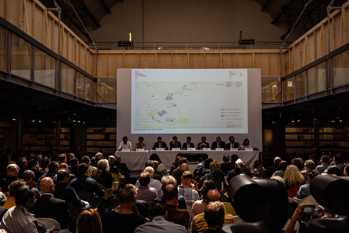 Public meeting on security measures (QR code, no-entry zones around Olympic venues and along the Seine for the opening ceremony) for the JOP 2024 Olympic and Paralympic Games at the Arsenal Pavilion in Paris, France on June 07, 2024. The event was attended by elected officials from the city of Paris, members of the Olympic organizing committee COJOP, members of the French government, Parisian retailers and representatives of trade federations and the tourism industry (reservation required for customers of retailers, restaurants and hotels).