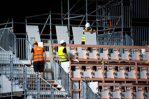 Chantier de transformation de la salle de concert La Defense Arena en piscine olympique - JO PARIS 2024 - Nanterre - 12 juin 2024