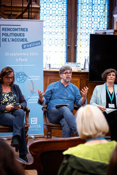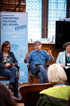 Conference de presse dans le cadre des "Rencontres Politiques de l'Accueil" de l'Association Nationale des Villes et Territoires Accueillants (ANVITA) a l'Hotel de Ville de Paris, France le 26 Septembre 2024.