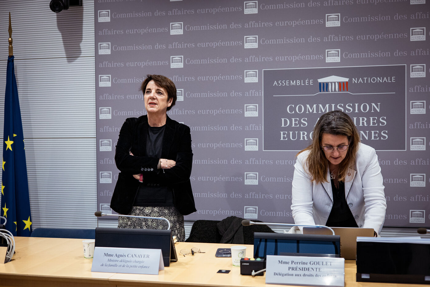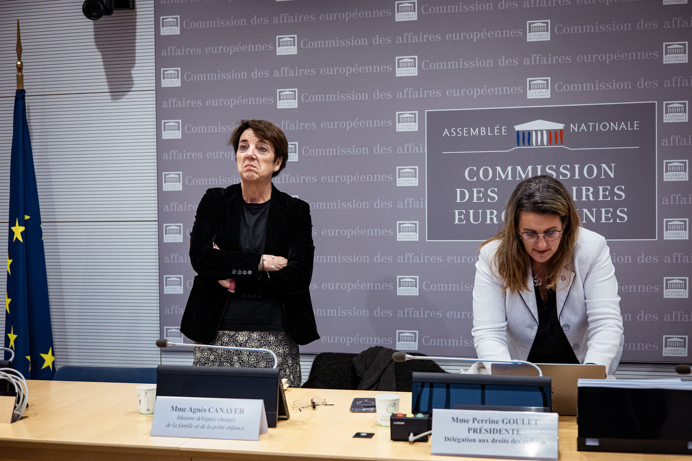 Hearing by members of the Delegation for Children's Rights of France's Minister for the Family and Early Childhood Agnes Canayer on the French government's child protection policy at the French National Assembly in Paris, France on November 19, 2024.