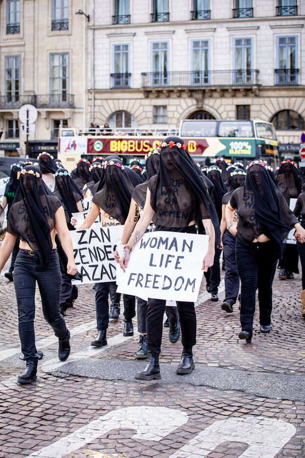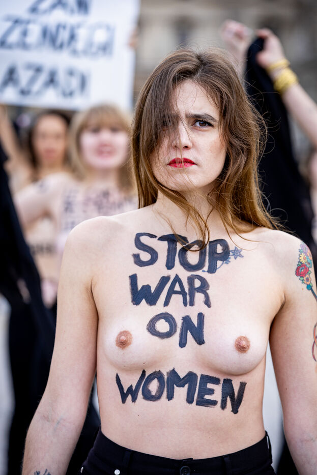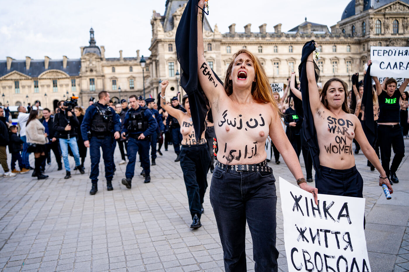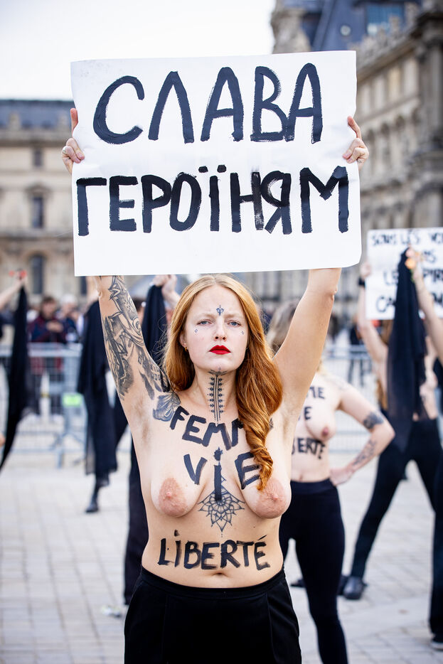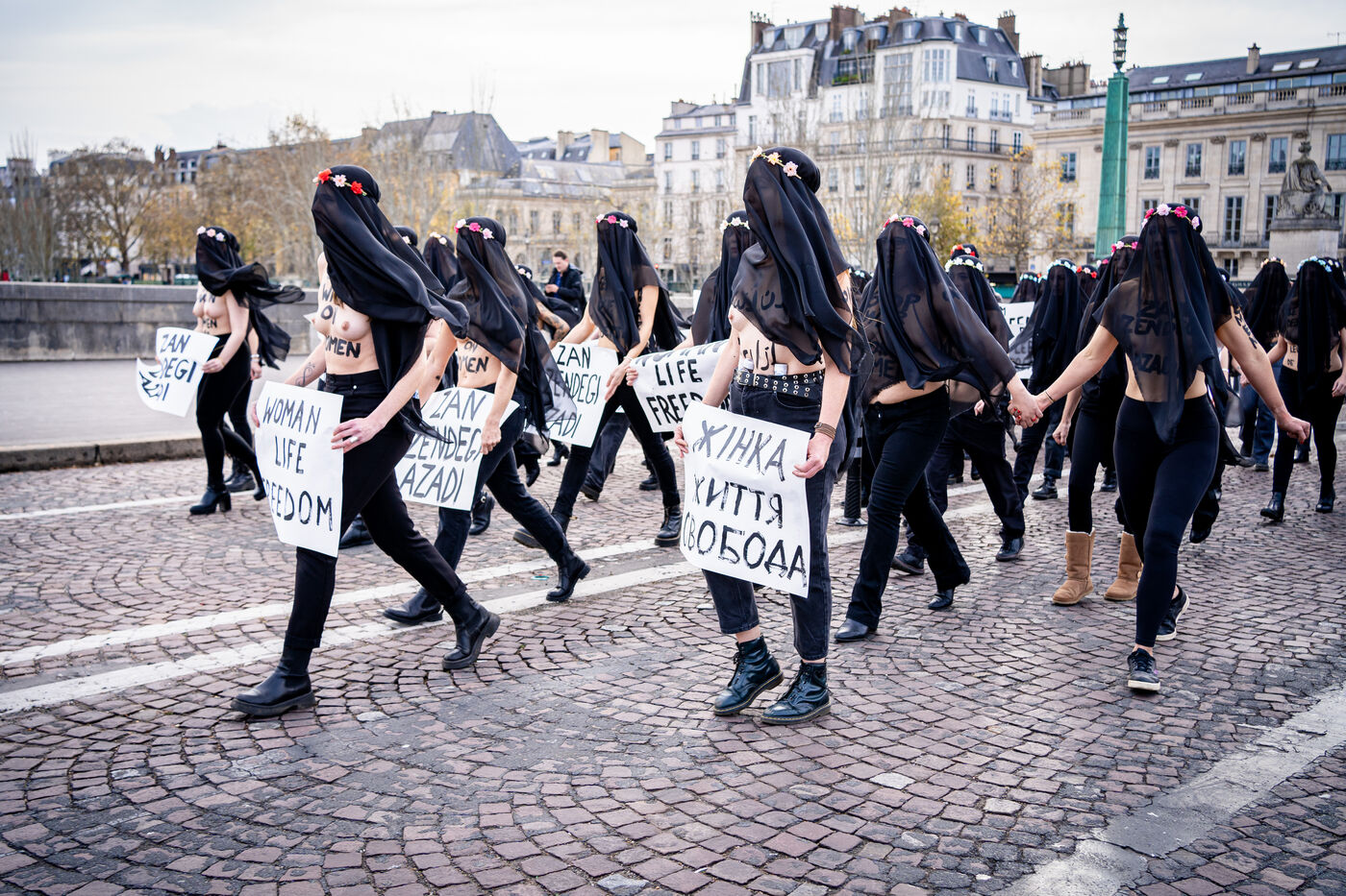 Major action by FEMEN activists against violence against women - Paris - November 24, 2024