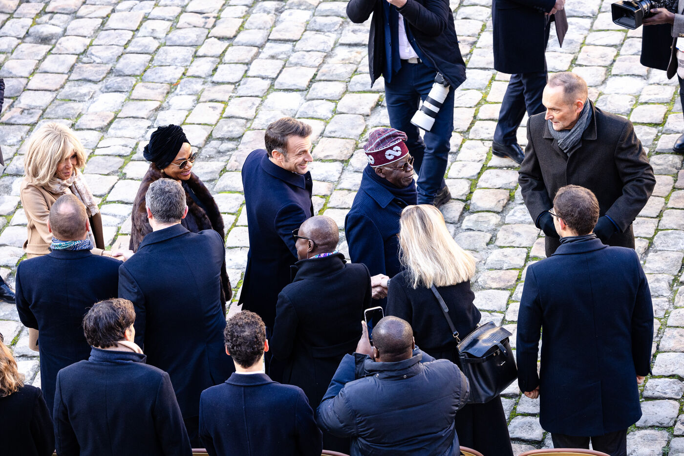 Cérémonie d'accueil officiel du Président de la République fédérale du Nigéria par le président de la République française, visite de chef d'état et honneurs militaires à l'Hotel national des Invalides à Paris, France le 28 Novembre 2024.