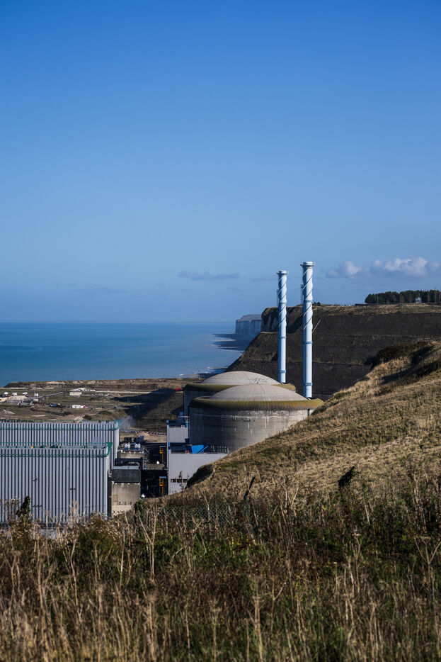 Centrale nucléaire de Penly sur la cote de la Manche (réacteurs refroidis par l eau de la mer), site retenu pour l implantation de nouveaux réacteurs nucléaires EPR a partir de 2024 (projet EPR2 de EDF - Electricité de France) à Petit-Caux.