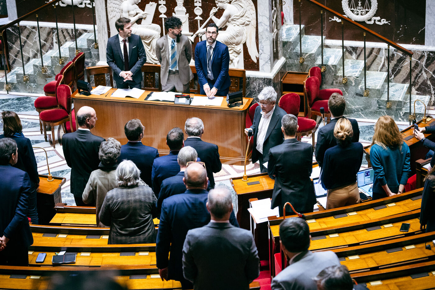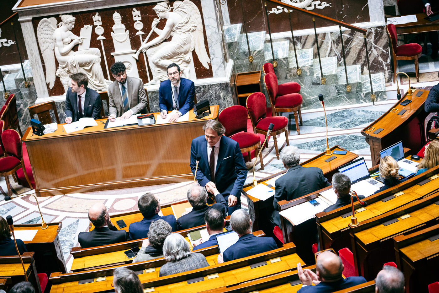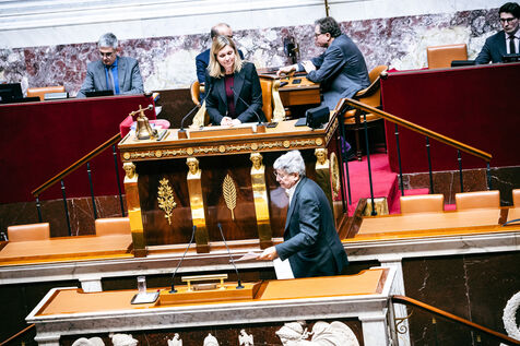 Examination of the conclusions of the joint committee on the draft finance bill for 2025 (PLF 2025, budget) in the hemicycle of the National Assembly in Paris, France on February 3, 2025. The Government, through the Prime Minister, has engaged its responsibility, in application of article 49, paragraph 3 (49.3), of the Constitution, a motion of censure tabled by La France Insoumise (left-wing opposition).
