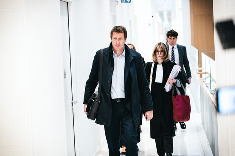 Opening of the trial of Yannick Jadot, a senator from the Ecologist group, who is on trial for defamation after accusing the company TotalEnergies of complicity in war crimes in Russia in 2022 (war in Ukraine) at the Paris Court, France on March 25, 2025.