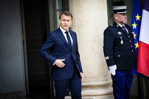 Emmanuel Macron greets Germany's Chancellor Friedrich Merz