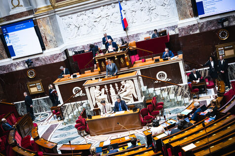 Examination of the bill on national energy and climate programming for the years 2025 to 2035 by the deputies present in the hemicycle of the National Assembly in Paris, France on June 16, 2025. Text examined and adopted by the Economic Affairs Committee.