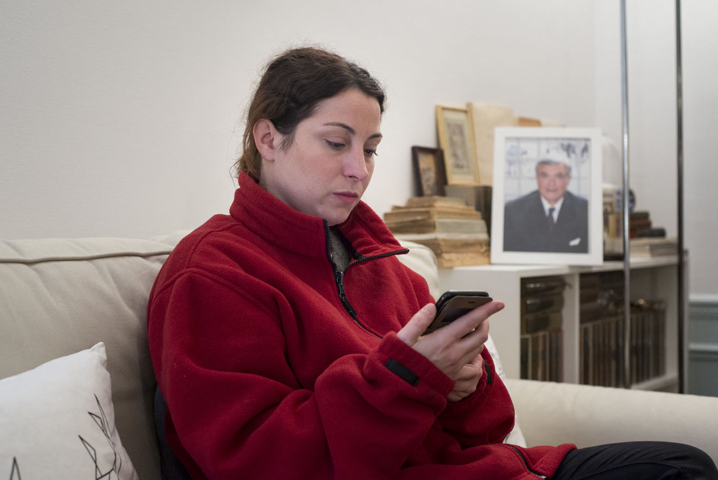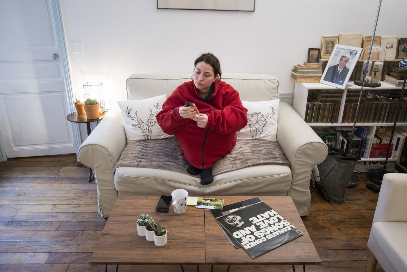D'ailleurs, physiquement son corps lui envoie quelques signes : elle a les mains moites et les jambes qui tremblent. Son premier réflexe est d'appeler un membre de sa famille qui l'a calme tout de suite, lui dit qu'elle doit se prendre la tête pour rien, pas de panique. Mais les mains restent moites et les jambes tremblent toujours. Elle fume clope sur clope, toujours en pyjama.