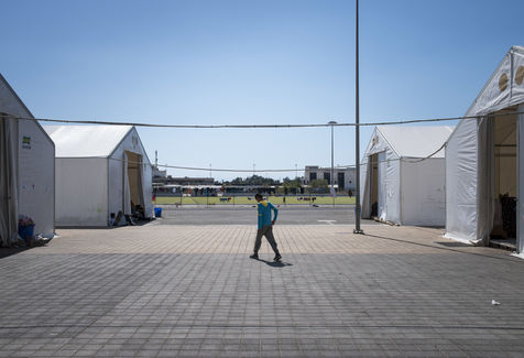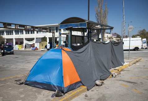 Dans la banlieue d'Athènes, sur le bord de mer, l'ancien aéroport et les stades construits pour les Jeux Olympiques de 2004, ont été transformés en centres d'accueil pour les 4000 réfugiés venus d'Afghanistan, de Syrie, d'Iran ou d'Irak pour la plupart. Dans les tribunes, à l'intérieur mais aussi en dehors des batiments, les tentes s'entassent. L'intimité est quasi inexistante. Dans un entrepôt de stockage sont amassés des centaines de cartons : couches, chaussures, vêtements, nourriture, hygiène... Des toilettes et des douches souvent très sales, sont installés dehors, sous la chaleur du printemps. Quelques volontaires organisent des jeux avec les enfants. Le quotidien est rythmé par les distributions de repas, parfois gérés par des associations internationales, parfois par le gouvernement grec. Mais c'est l'attente qui prédomine, l'attente de pouvoir avancer vers la nouvelle vie qu'ils espèrent.