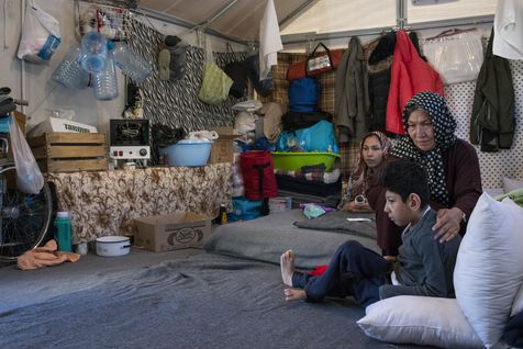 Nous nous arrêtons aussi dans la tente d'une autre famille afghane qui a fuit son pays il y a cinq mois, principalement pour trouver un médecin qui pourrait soigner Khalil, le fils handicapé qui vient d'avoir 18 ans, mais qui en fait 11. Une maladie des os. Ali, le père était fermier. Si la frontière ne s'ouvre pas, ils retourneront en Afghanistan mais leur avenir y sera compliqué, personne n'a gardé la ferme.